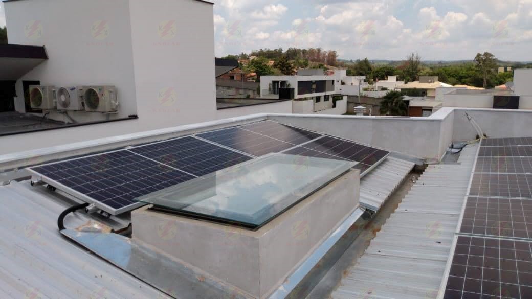 O projeto a seguir se apresenta em um telhado bem conservado, relativamente novo, de fácil acesso e seguro. O espaço foi quase todo utilizado. A manutenção pode ser anual com a limpeza dos módulos e verificação dos conectores e cabos.